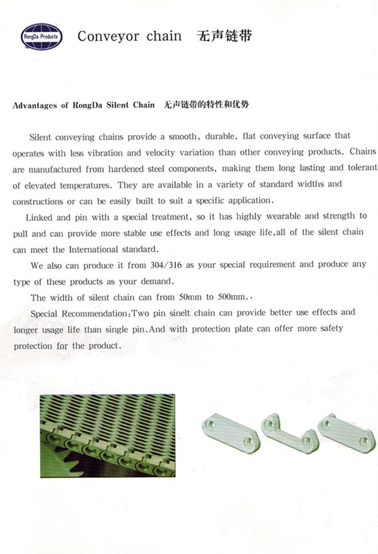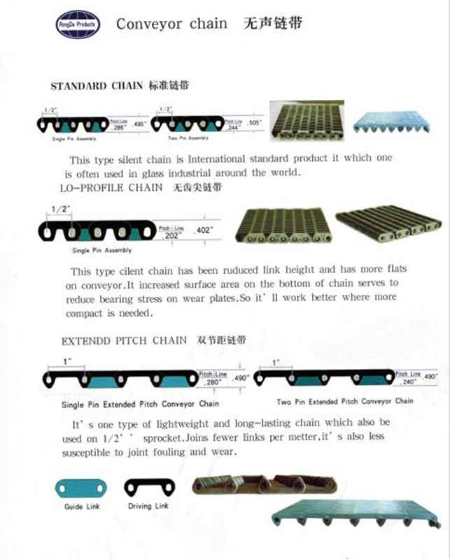 輸送面帶尖齒,便于高溫玻璃瓶罐的底部散熱,降溫效果好。這種無聲齒形鏈帶節(jié)距12.7毫米 寬度非標(biāo)定做,兩邊帶保護(hù)帽,屬于沉頭無聲齒形鏈帶。軸頭不外露,使用壽命大大延長(zhǎng)。輸送面平整,不倒瓶。受用壽命5-8年。耐磨,抗拉伸。