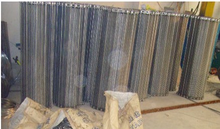 【鏈條式網帶簡介】:網鏈是在網帶的基礎之上,配以鏈條、支桿來達到更理想的輸送效果,網鏈根據規格類型分,主要有:菱形網鏈;雙螺旋網鏈、人字形網鏈、乙型網鏈、馬蹄式網鏈、折彎網鏈等。根據用途分主要有:食品網鏈、烘干網鏈、隧道式窯爐網鏈、熱處理網鏈、果蔬清洗網鏈、膨化網鏈、速凍行業網鏈、噴涂設備網鏈、轉彎網鏈、退火爐網鏈。