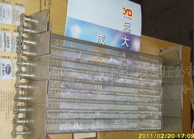 【鏈條式網帶材質】:材質有A3低碳鋼、45#鋼、1Cr13耐熱鋼、 不銹鋼、304不銹鋼、1Cr18Ni9Ti不銹鋼、0Cr18Ni14NO2CU2耐熱耐酸鋼等