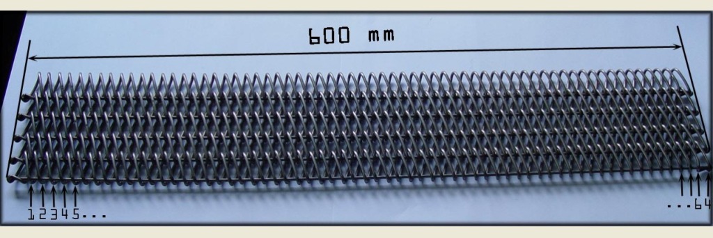 【鏈條式網帶規格】:比較常用的鏈條型號如下:06B、08B、10A、12A、16A、20A、24A、C2040、C2042、C2050、C2052、C2060、C2062、C2080、C2082,以及一些P=50mm、P=100mm的非標鏈條網帶鏈條節距是50.8MM,寬度23MM,長74MM,內孔8MM,單網帶的的寬度是600MM,中心距652MM,側擋板和橫擋板2MM,材料均采用304不銹鋼制作