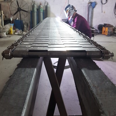 鏈板輸送帶非常堅(jiān)固,由不銹鋼鏈條驅(qū)動(dòng),采用不銹鋼板材生產(chǎn),適合用于輸送細(xì)小的高密度物件,輸送過(guò)程中運(yùn)轉(zhuǎn)平穩(wěn),安裝更換方便,使用壽命較長(zhǎng)。用于中等和大負(fù)荷輸送。鋼板彎曲形成合葉,使用支軸將合葉和鏈條串在一起。兩端的鏈條可以使用開(kāi)口銷或者墊圈來(lái)固定,使用開(kāi)口銷方便拆卸,維護(hù)方便。