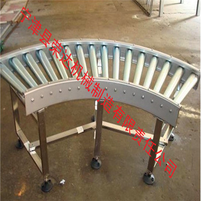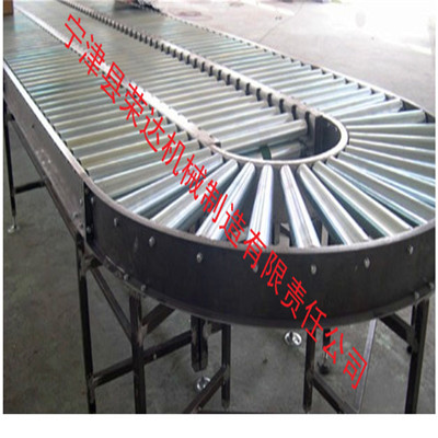 按布置形式可分為水平輸送滾筒線,傾斜輸送滾筒線和轉(zhuǎn)彎滾筒線。