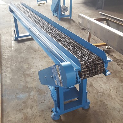 3,輸送熱鍛造件有坡度方案是用鏈板輸送機,鏈桿輸送機,其次是精密滾子鏈條輸送機,不應該采用無聲齒形鏈帶或者無聲齒形鏈條輸送機。