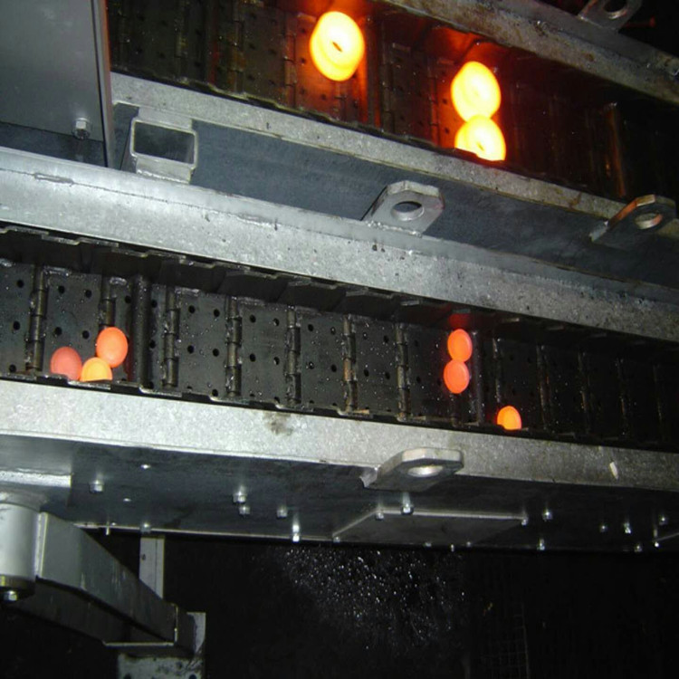 燒紅金屬件輸送機采用304不銹鋼材質做鏈板,鏈條采用合金鋼制作做。具有耐高溫 耐腐蝕 耐磨 抗壓 抗沖擊力使用壽命長。