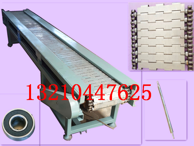我們的鏈板輸送機,鏈板輸送帶采用16A空心鏈條,鏈板厚度2.5mm,采用不銹鋼201材質,兩邊采用進口軸承外徑32毫米 內孔15毫米,6202rz軸承,crx軸承,因為軸承摩擦系數小,省電節能,無聲,結實,支軸采用15毫米,40*80軌道,因為軸承能自轉 而且軸承鋼耐磨,實現了快速無聲的目標,要趁熱打鐵 所以需要高速。速度能達到每秒2米