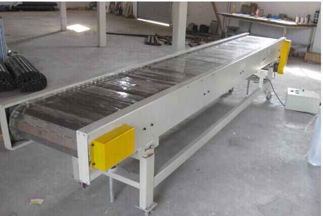 鏈板輸送機:又叫鏈板傳送機,鏈板線,鏈板傳送帶。是一種利用循環(huán)往復(fù)的鏈條作為牽引動力,以金屬板作為輸送承載體的一種輸送機械設(shè)備。國內(nèi)市場上有兩種鏈板輸送機,一種是用鏈條,支軸和金屬板組成的輸送鏈板做成的輸送機;一種是用帶彎板的鏈條和金屬板組成的金屬板輸送帶做成的鏈板輸送機,另一種是平頂鏈鏈板輸送機。