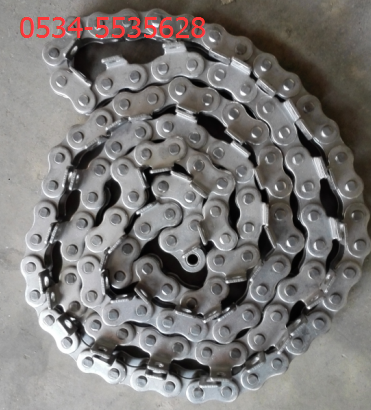 C2102彎板鏈條成功案例分享:2016年7月5日給天津機械廠做的63.5毫米的C2102的鏈條,單側外片帶雙孔彎板,另一側帶側滾輪,鏈條的滾子直徑38.1毫米,鏈條的片厚度3毫米,鏈條屬于直板大滾子輸送鏈條。現貨供應 需要的聯系哦 電話13165346448方經理