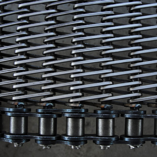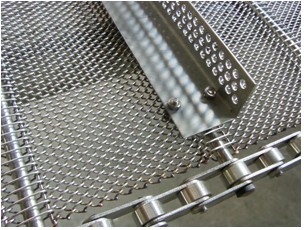 鏈條式網帶在食品行業上廣泛的應用著。鏈條式網帶由一般的輸送網帶兩側加裝鏈條及橫向支撐桿而成,鏈輪傳動,網帶寬帶固定不變形。調整網帶不同的節距,即可安裝不同形式的鏈條,容易安裝網帶的附屬配件,如擋板,側翼。。。。。網面平整,可承載較重的壓力和拉力,通風透氣性能好,節能環保,網面潔凈無毒,而且容易清洗,維修和拆卸極為方便,鏈條式網帶被廣泛用于食品速凍,蔬菜除沙,清洗殺菌,殺菌預煮,烘烤,干燥,電子行業生產線。