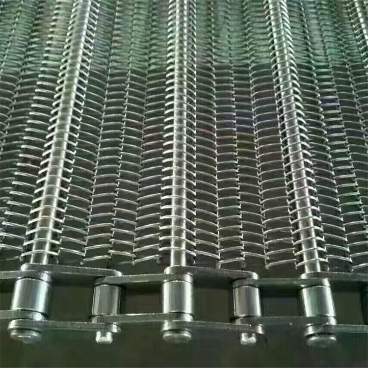 鏈條式網帶由一般的輸送網帶兩側加裝鏈條及橫向支撐桿而成,鏈輪傳動,網帶寬帶固定不變形。調整網帶不同的節距,即可安裝不同形式的鏈條,容易安裝網帶的附屬配件,如擋板,側翼。。。。。網面平整,可承載較重的壓力和拉力,通風透氣性能好,節能環保,網面潔凈無毒,而且容易清洗,維修和拆卸極為方便,鏈條式網帶被廣泛用于食品速凍,蔬菜除沙,清洗殺菌,殺菌預煮,烘烤,干燥,電子行業生產線。