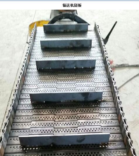 鏈板式輸送機,利用固接在牽引鏈上的一系列鏈板在水平或傾斜方向輸送物料的輸送機,以單片鋼板鉸接成環帶作為運輸機的牽引和承載構件承載面具有橫向隔片置于槽箱中驅動環帶借隔片將煤刮運輸出。它由驅動機構、張緊裝置、牽引鏈、板條、驅動及改向鏈輪、機架等部分組成。在冶金、煤炭、化工、電力、機械制造及國民經濟的其他工業部門中均得到了廣泛的應用。特點