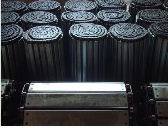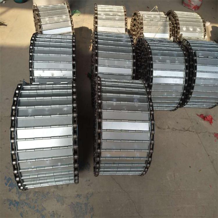 鏈板輸送帶非常堅(jiān)固,由不銹鋼鏈條驅(qū)動(dòng),采用不銹鋼板材生產(chǎn),適合用于輸送細(xì)小的高密度物件,輸送過(guò)程中運(yùn)轉(zhuǎn)平穩(wěn),安裝更換方便,使用壽命較長(zhǎng)。用于中等和大負(fù)荷輸送。鋼板彎曲形成合葉,使用支軸將合葉和鏈條串在一起。兩端的鏈條可以使用開(kāi)口銷(xiāo)或者墊圈來(lái)固定,使用開(kāi)口銷(xiāo)方便拆卸,維護(hù)方便。鏈板大概分:1,按照材質(zhì)分:碳鋼鏈板輸送帶,鍍鋅鏈板輸送帶,不銹鋼201鏈板輸送帶,不銹鋼304鏈板輸送帶,其他不銹鋼鏈板輸送帶。2,根據(jù)外形來(lái)分:平鏈板輸送帶,帶橫擋板鏈板輸送帶,帶擋邊鏈板輸送帶,沖孔鏈板輸送帶(圓孔,長(zhǎng)條孔),帶凸起鏈板輸送帶。3,根據(jù)輸送形式分:直輸鏈板輸送帶,拐彎的鏈板輸送帶。4,合頁(yè)鏈板輸送帶,排屑鏈板輸送帶,槽鋼鏈板輸送帶。5,雙節(jié)距鏈條鏈板帶,精密滾子鏈條鏈板輸送帶。
