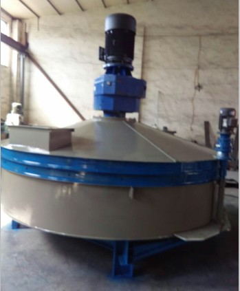 渦槳裝置是由帶電機減速機帶動攪拌工作的,渦槳開啟后,向上罩進料口加入配合料,由于裝有多組攪拌葉片的渦槳在筒體內旋轉,物料被強制攪拌而成均勻的混合料,這時,卸料裝置通過氣缸料門,均勻的混合料被內外鏟臂的刮板排出體外,關閉卸料門,完成一個操作周期