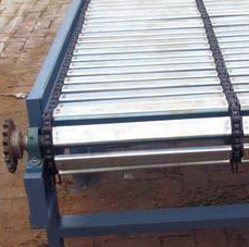 鏈板輸送機:又叫鏈板傳送機,鏈板線,鏈板傳送帶。是一種利用循環往復的鏈條作為牽引動力,以金屬板作為輸送承載體的一種輸送機械設備。國內市場上有兩種鏈板輸送機,一種是用鏈條,支軸和金屬板組成的輸送鏈板做成的輸送機;一種是用帶彎板的鏈條和金屬板組成的金屬板輸送帶做成的鏈板輸送機,另一種是平頂鏈鏈板輸送機。