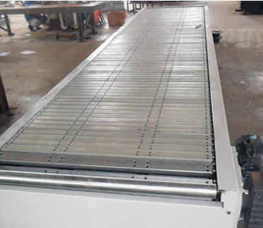 鏈板輸送機:又叫鏈板傳送機,鏈板線,鏈板傳送帶。是一種利用循環往復的鏈條作為牽引動力,以金屬板作為輸送承載體的一種輸送機械設備。國內市場上有兩種鏈板輸送機,一種是用鏈條,支軸和金屬板組成的輸送鏈板做成的輸送機;一種是用帶彎板的鏈條和金屬板組成的金屬板輸送帶做成的鏈板輸送機,另一種是平頂鏈鏈板輸送機。