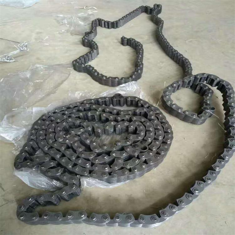 2.可靠性較高 齒形鏈的鏈節是多片式結構,當其中個別鏈片在工作中遭到破壞時并不影響整根鏈條的工作,使人們能夠及時發現并更換,如需增加承載能力在寬度方向較小尺寸(增加鏈片排數)。
