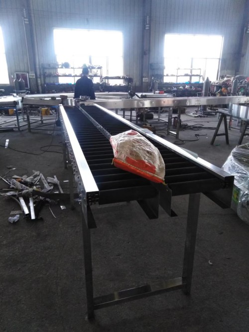 滾筒輸送機適用于各類箱、包、托盤等件貨的輸送,散料、小件物品或不規則的物品需放在托盤上或周轉箱內輸送。能夠輸送單件重量很大的物料,或承受較大的沖擊載荷,滾筒線之間易于銜接過渡,可用多條滾筒線及其它輸送機或專機組成復雜的物流輸送系統,完成多方面的工藝需要。可采用積放滾筒實現物料的堆積輸送。滾筒輸送機結構簡單,可靠性高,使用維護方便。滾筒輸送機適用于底部是平面的物品輸送,主要由傳動滾筒、機架、支架、驅動部等部分組成。具有輸送量大,速度快,運轉輕快,能夠實現多品種共線分流輸送的特點。滾筒輸送機結構形式:按驅動方式可分為動力滾筒線和無動力滾筒線,按布置形式可分為水平輸送滾筒線、傾斜輸送滾筒 線和轉彎滾筒線。還可按客戶要求特殊設計,以滿足各類客戶的要求。標準規滾筒線內寬度為200、300、400、500、1200mm等。也可按客戶需求采用其它特殊規格。轉彎滾筒線標準轉彎內半徑為600、900、1200mm等,也可按客戶需求采用其它特殊規格。直段滾筒所用的滾筒直徑有38、50、 60、76、89mm 滾輸送機的注意事項 :第一:物品在輸送的任何時間點,物品底部都必須有最少有三根滾與物品底部接觸 第二:滾筒輸送機先空載啟動,運行正常在放物料,停止放物料,再停機。
