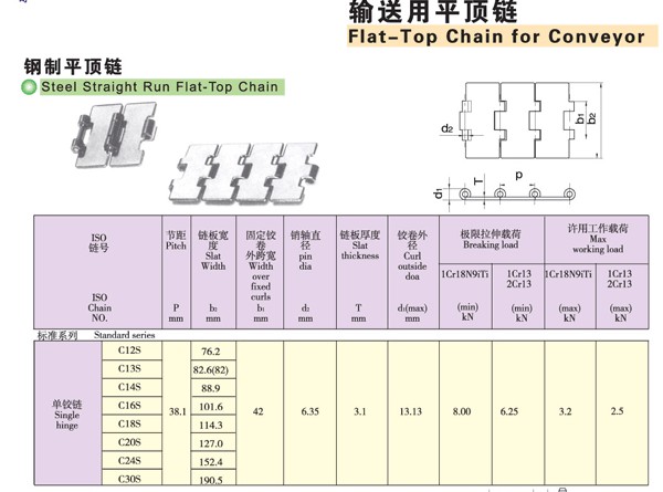 平頂鏈:也叫平頂輸送鏈,英文為Flat-top conveyor chains,平頂鏈?zhǔn)且环N輸送鏈板,輸送設(shè)備的輸送帶。